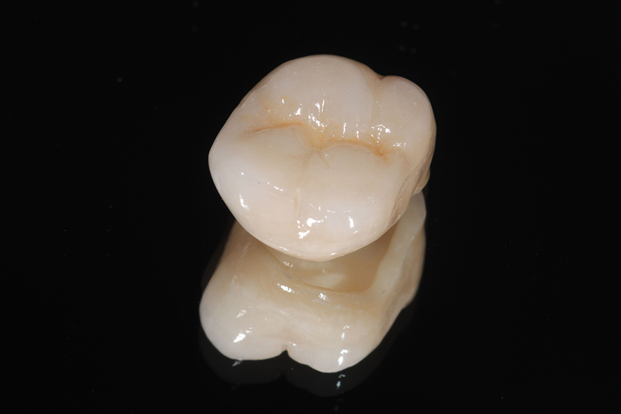 オールセラミッククラウンとは、セラミック素材のみで作られた白い被せ物(クラウン・差し歯)です。詰め物よりも削った部分が大きい場合に、被せるように装着します。